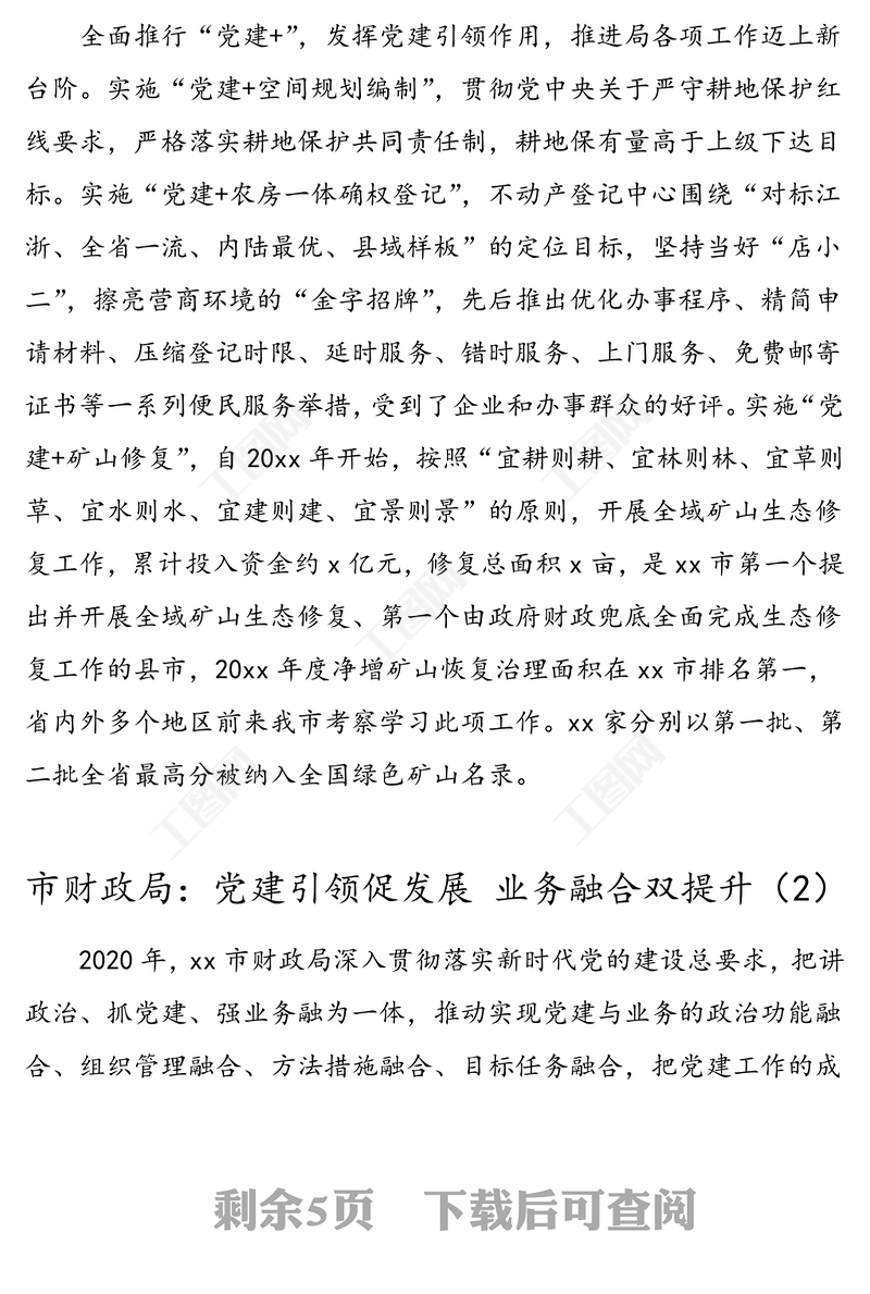 工圖網(wǎng)提供公文材料:3篇黨建業(yè)務(wù)融合發(fā)展工作經(jīng)驗(yàn)材料黨建經(jīng)驗(yàn)含自然資源局財(cái)政局編辦供會(huì)員免費(fèi)下載。更多精彩黨課PPT素材,盡在工圖網(wǎng)。