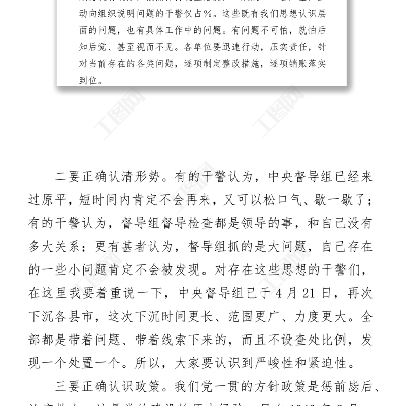 工圖網(wǎng)提供2021政法隊(duì)伍教育整頓查糾整改環(huán)節(jié)重點(diǎn)工作推進(jìn)會(huì)講話2700字供會(huì)員免費(fèi)下載。更多精彩黨課PPT素材,盡在工圖網(wǎng)。
