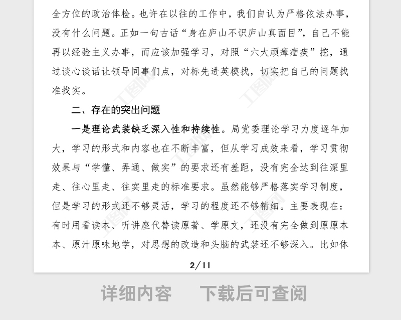 工圖網(wǎng)提供班子對照檢查2021年政法隊伍教育整頓專題民主生活會對照檢查材料范文檢視剖析材料發(fā)言提綱供會員免費下載。更多精彩黨課PPT素材,盡在工圖網(wǎng)。