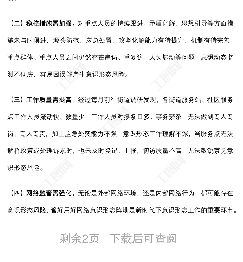 2021年意識(shí)形態(tài)工作學(xué)習(xí)材料2022意識(shí)形態(tài)工作研判報(bào)告意識(shí)形態(tài)工作調(diào)研報(bào)告2022年2022融媒體中心意識(shí)形態(tài)工作總結(jié)2022實(shí)驗(yàn)幼兒園意識(shí)形態(tài)工作責(zé)任清單2022黨支部年度意識(shí)形態(tài)工作報(bào)告2022意識(shí)形態(tài)工作巡察重點(diǎn)及注意事項(xiàng)中學(xué)2021年意識(shí)形態(tài)工作總結(jié)2022意識(shí)形態(tài)工作風(fēng)險(xiǎn)點(diǎn)排查方案2022意識(shí)形態(tài)工作措施不夠深入的原因2021年個(gè)人意識(shí)形態(tài)工作述職2022關(guān)于審議意識(shí)形態(tài)工作報(bào)告的請(qǐng)示2021車(chē)隊(duì)意識(shí)形態(tài)工作總結(jié)2022檢察人意識(shí)形態(tài)工作學(xué)習(xí)心得體會(huì)2022意識(shí)形態(tài)工作一會(huì)一報(bào)制度文件消防大隊(duì)2021年意識(shí)形態(tài)工作總結(jié)