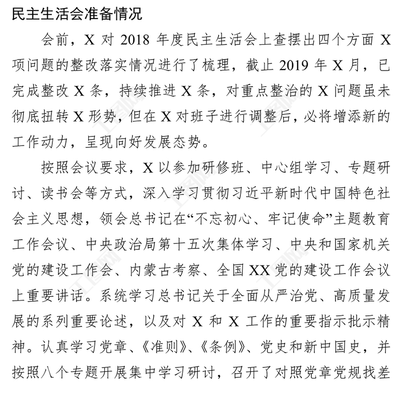 [不忘初心 牢記使命]不忘初心牢記使命民主生活會材料包含