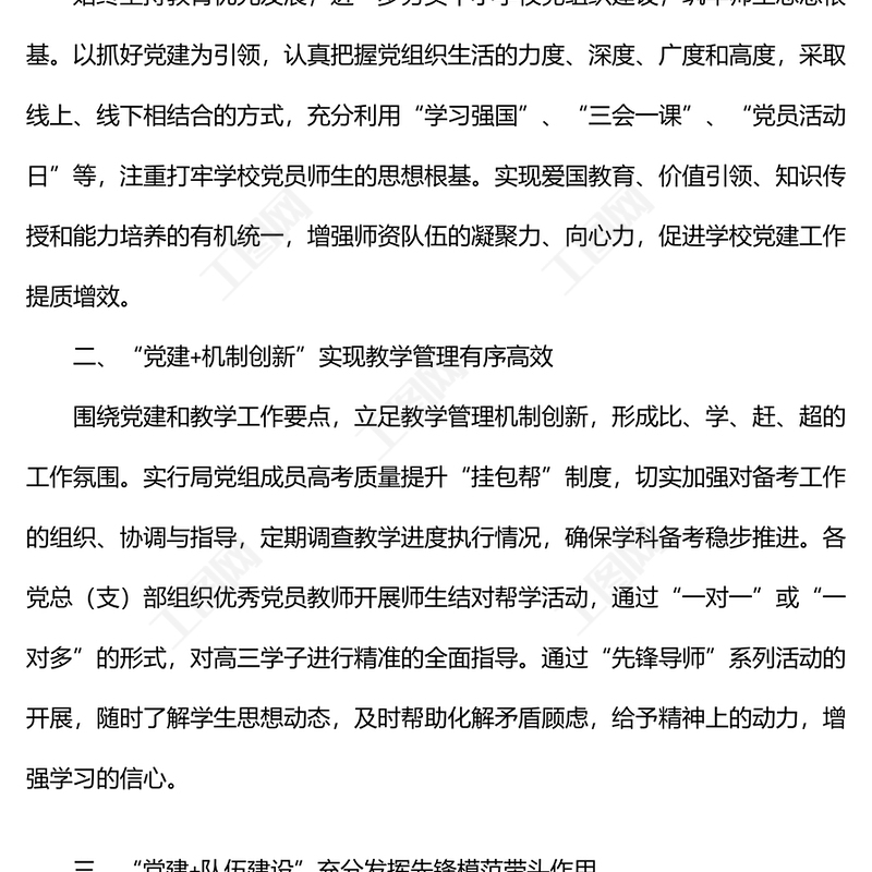 工圖網(wǎng)提供教體局黨建引領(lǐng)教育高質(zhì)量發(fā)展經(jīng)驗(yàn)材料供會(huì)員免費(fèi)下載。更多精彩黨課PPT素材,盡在工圖網(wǎng)。