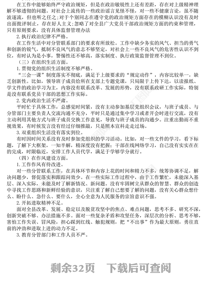 2021年村黨組織生活會個人對照檢查材料最新2021年組織生活會個人對照檢查材料2021年黨組織生活會個人對照檢查材料2021年組織生活會個人對照檢查材料教師2021年銀行組織生活會個人對照檢查材料2021年社區(qū)組織生活會個人對照檢查材料2021年黨史學(xué)習(xí)教育組織生活會個人對照檢查材料2021年黨員組織生活會個人對照檢查材料醫(yī)生組織生活會個人對照檢查材料2021年2022社區(qū)組織生活會個人對照檢查材料2022鄉(xiāng)鎮(zhèn)衛(wèi)生院組織生活會個人對照檢查材料2022戒毒所民警組織生活會個人對照檢查材料2021工會民主生活會個人對照檢查材料2021年組織生活會個人對照檢查材料黨史2022監(jiān)獄年度組織生活會個人對照檢查材料2022黨辦主任組織生活會個人對照檢查材料