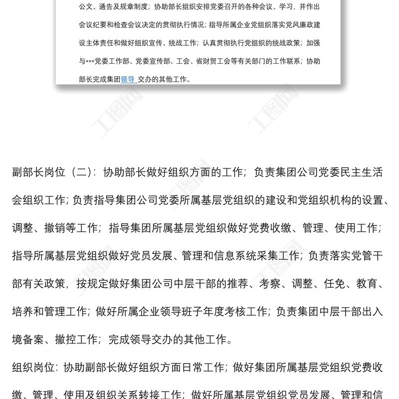 工圖網(wǎng)提供集團(tuán)公司各部室崗位職責(zé)及工作標(biāo)準(zhǔn)(最新)供會(huì)員免費(fèi)下載。更多精彩黨課PPT素材,盡在工圖網(wǎng)。