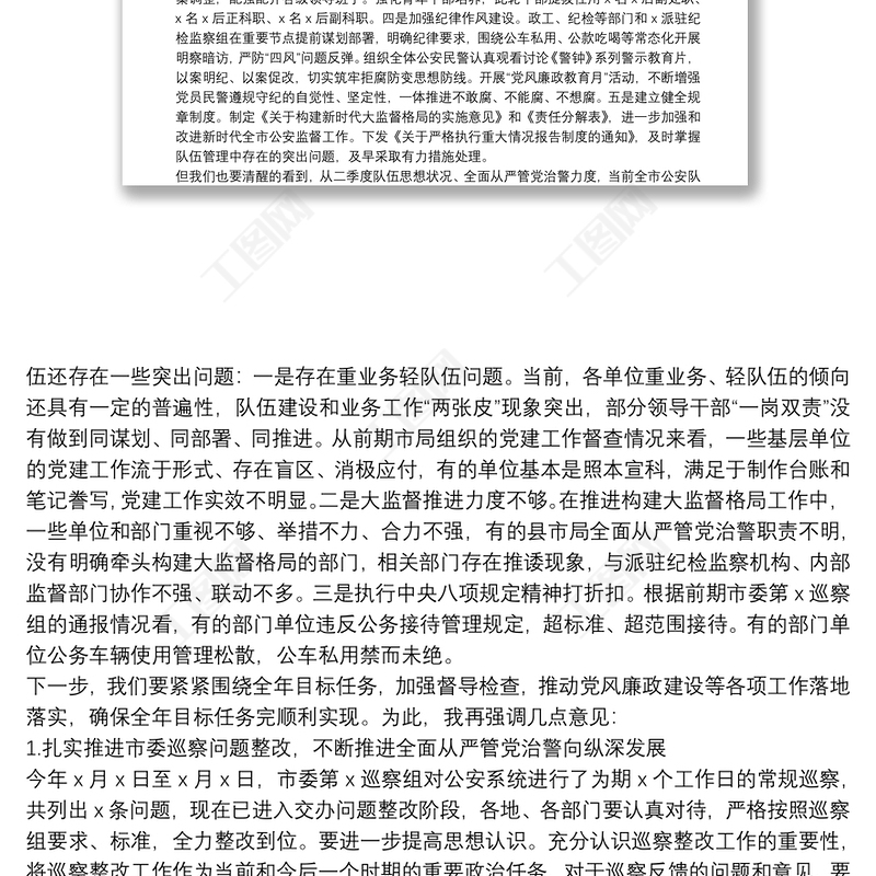 X市公安局政委在二季度隊伍思想狀況摸排和黨風(fēng)廉政會上的講話在全面從嚴(yán)治黨述職點評反饋問題整改 Array