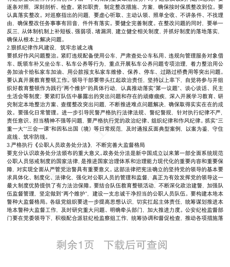 > 黨風(fēng)廉政 > X市公安局政委在二季度隊伍思想狀況摸排和黨風(fēng)廉政會上的講話在全面從嚴(yán)治黨述職點評反饋問題整改.DOCX 【圖片、文字、動畫均可編輯】