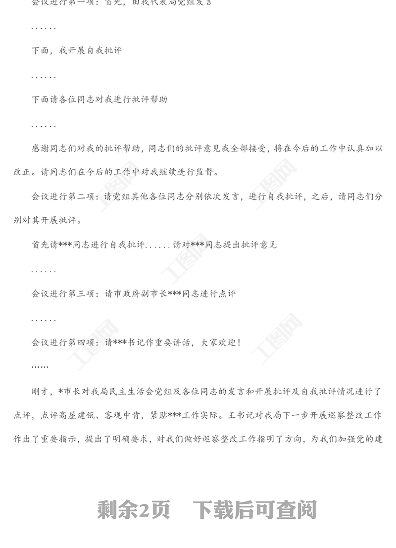 工圖網(wǎng)提供某局黨組書記巡察整改專題民主生活會主持詞供會員免費(fèi)下載。更多精彩黨課PPT素材,盡在工圖網(wǎng)。