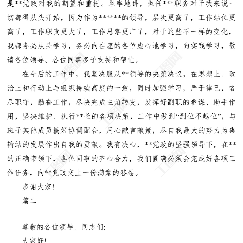 新崗位任職表態(tài)發(fā)言稿九篇 Array