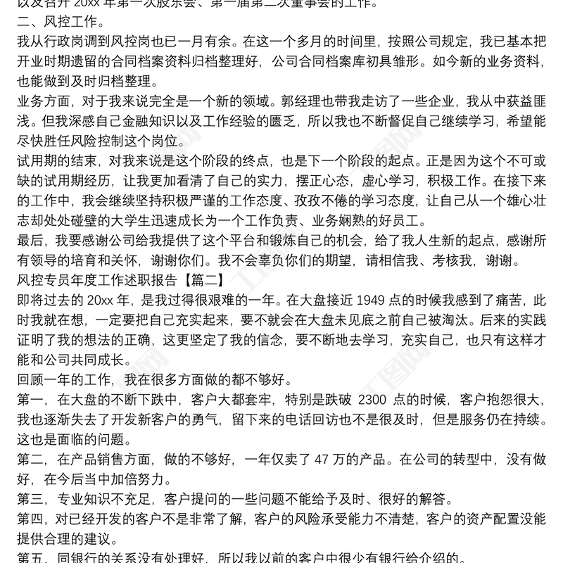 風(fēng)控專員年度工作述職報(bào)告 Array