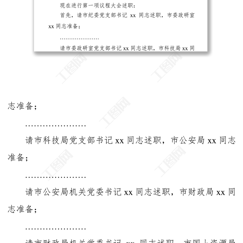 工圖網(wǎng)提供年度黨建述職評議工作會議主持詞演講(一)供會員免費下載。更多精彩黨課PPT素材,盡在工圖網(wǎng)。