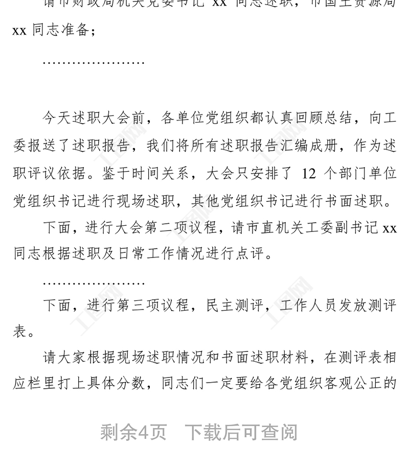 年度黨建述職評議工作會議主持詞演講(一),年度黨建述職評議工作會議主持詞 Array