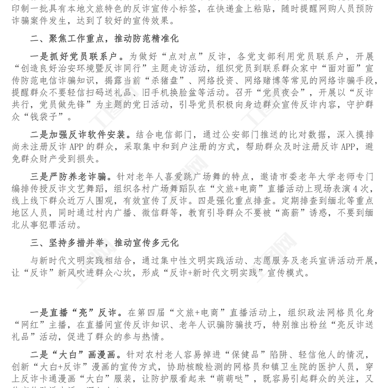 工圖網(wǎng)提供防范電信詐騙工作經(jīng)驗(yàn)交流材料供會員免費(fèi)下載。更多精彩黨課PPT素材,盡在工圖網(wǎng)。