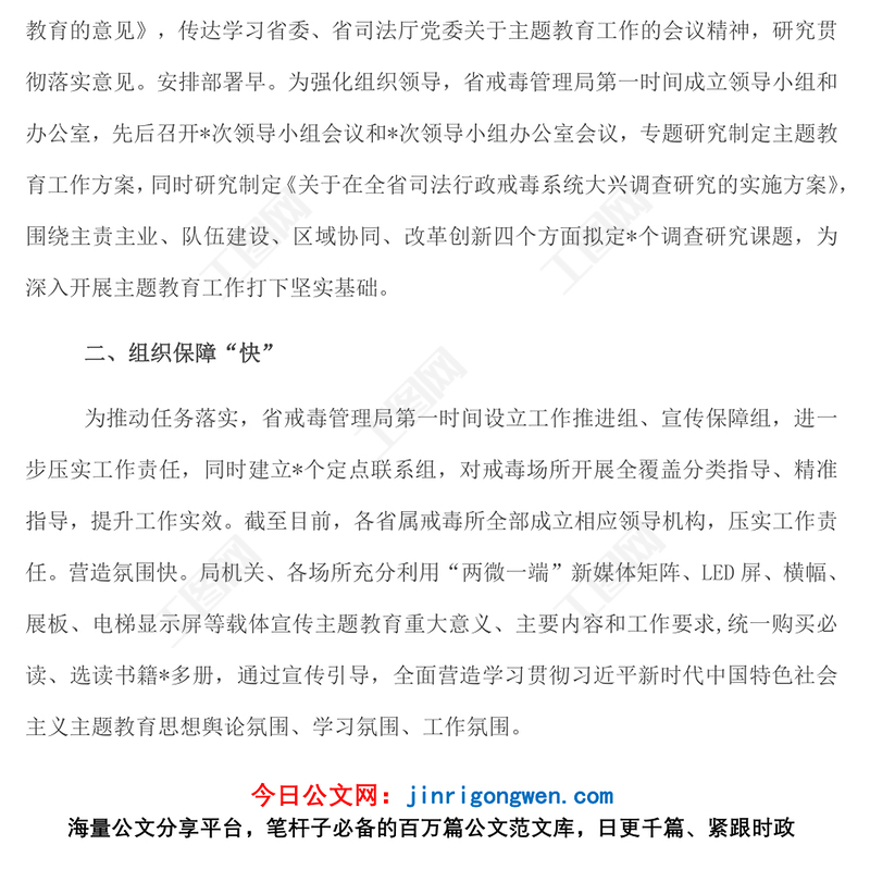 首頁 > WORD文檔 > 公文范文 > 抓“早、快、實”奮力推動主題教育良好開局.DOCX 【圖片、文字、動畫均可編輯】