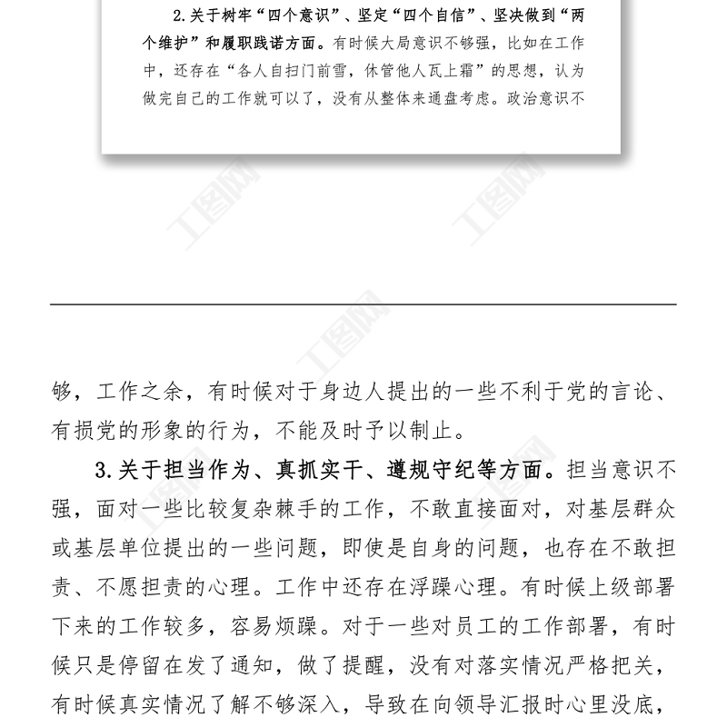 工圖網(wǎng)提供政法隊(duì)伍教育整頓組織生活會(huì)個(gè)人對(duì)照檢查材料供會(huì)員免費(fèi)下載。更多精彩黨課PPT素材,盡在工圖網(wǎng)。