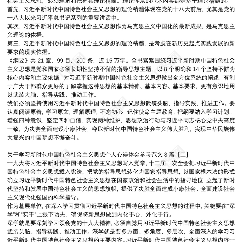 關(guān)于學(xué)習(xí)新時(shí)代中國特色社會(huì)主義思想個(gè)人心得體會(huì)參考范文8篇