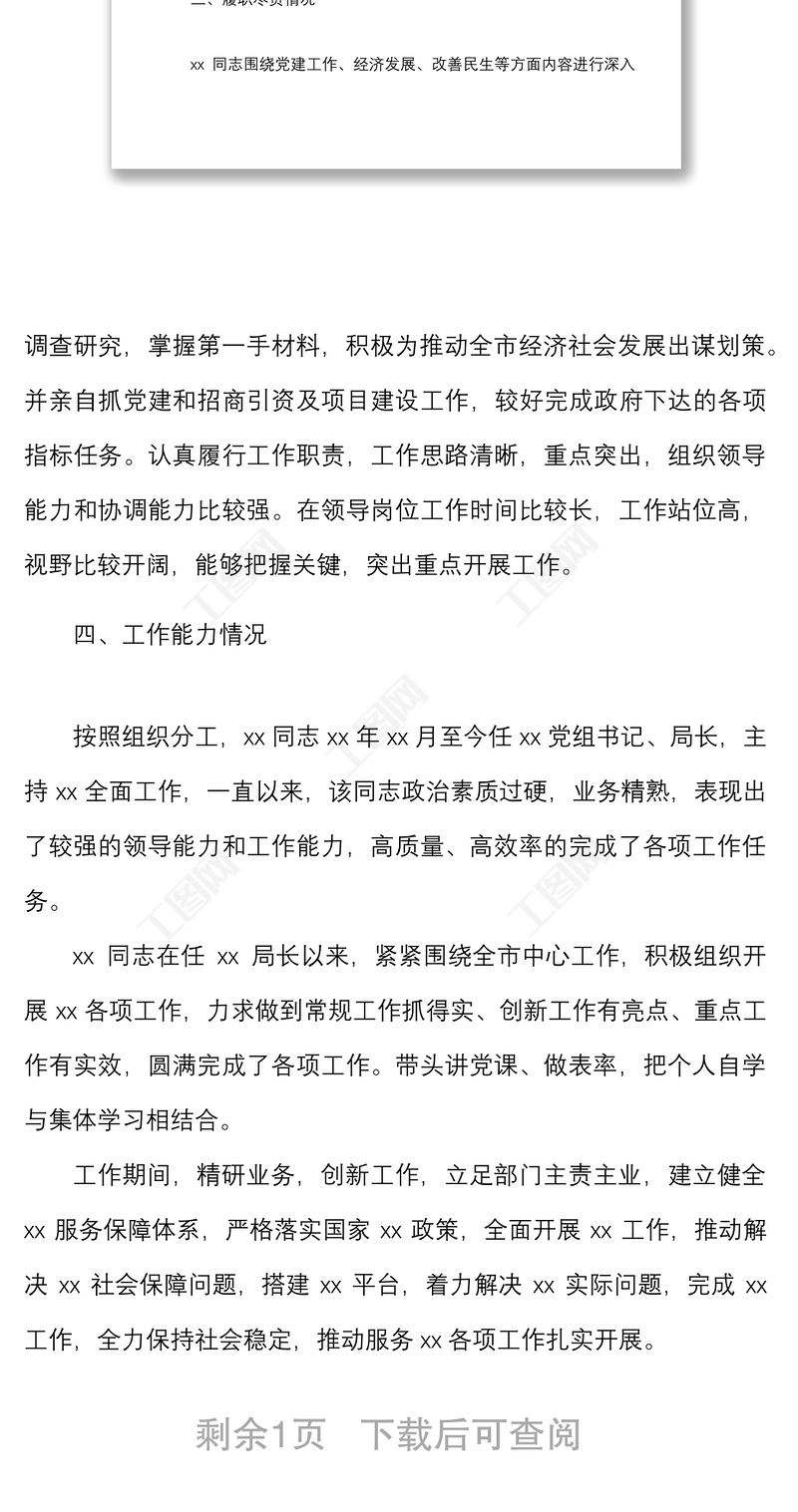 工圖網提供x局長政治畫像范文基本情況綜合素質履職盡責工作能力日常生活和廉潔風險情況報告政治表現(xiàn)匯報供會員免費下載。更多精彩黨課PPT素材,盡在工圖網。