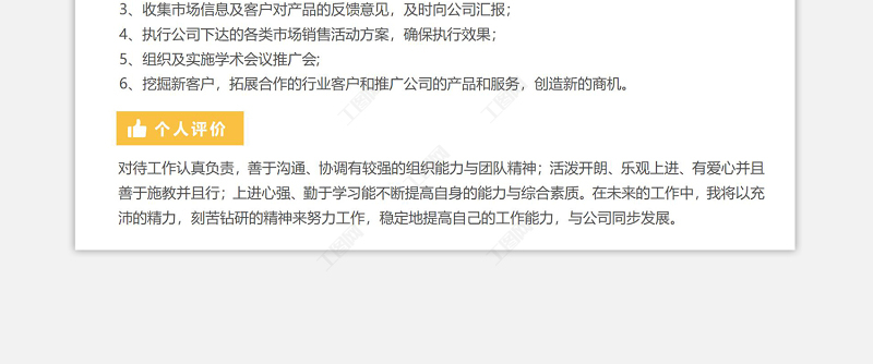 亮麗黃極簡實用市場銷售面試求職簡歷模板下載