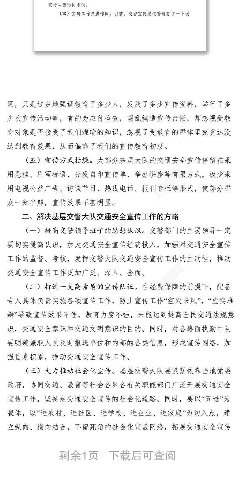 2021基于基層交警大隊宣傳工作存在的問題策略
