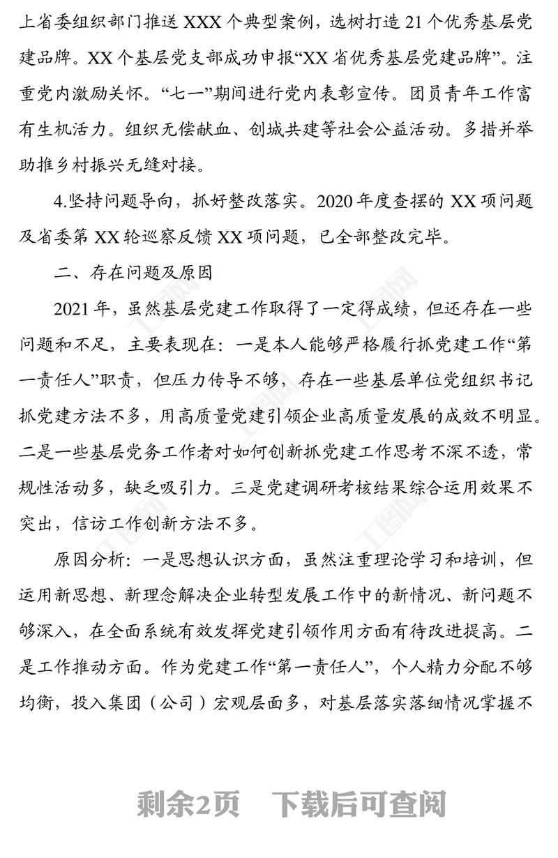 工圖網(wǎng)提供集團(tuán)(公司)2021年度黨組織書記抓基層黨建工作述職報(bào)告供會員免費(fèi)下載。更多精彩黨課PPT素材,盡在工圖網(wǎng)。