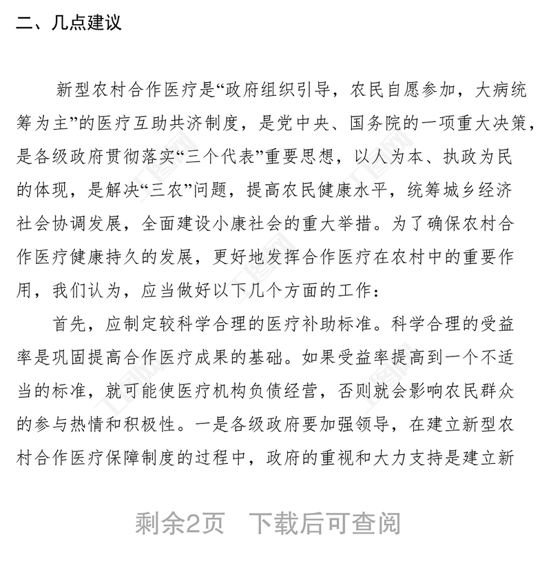 關(guān)于農(nóng)村合作醫(yī)療工作存在的問題和建議 Array