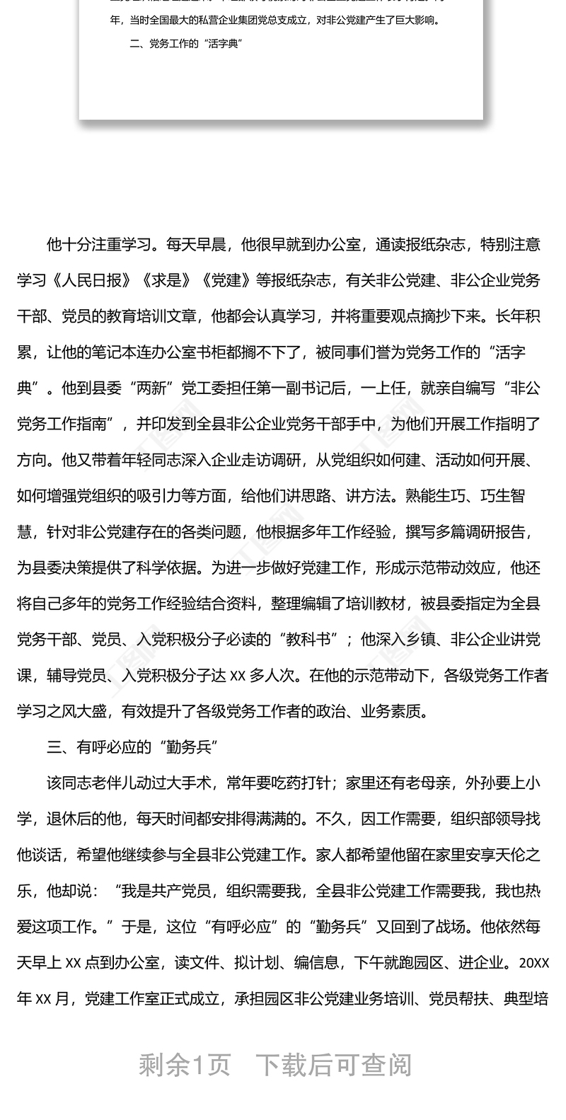 工圖網(wǎng)提供退休干部優(yōu)秀黨務(wù)工作者先進(jìn)事跡材料供會員免費(fèi)下載。更多精彩黨課PPT素材,盡在工圖網(wǎng)。