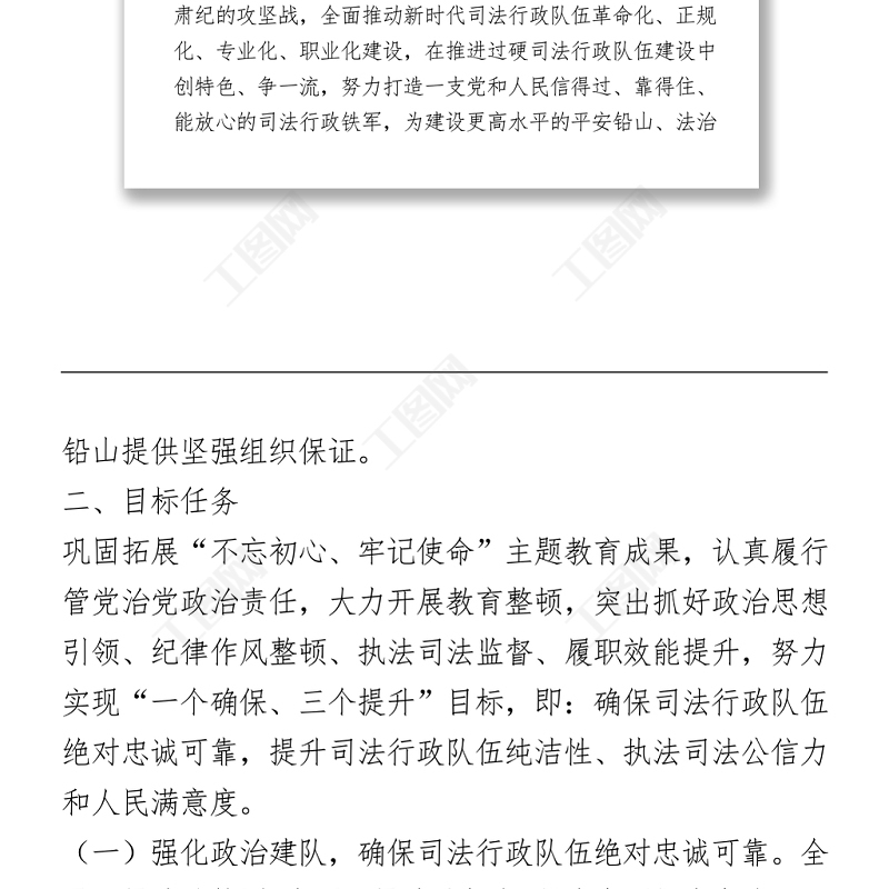 工圖網(wǎng)提供司法行政隊伍教育整頓工作實施方案供會員免費(fèi)下載。更多精彩黨課PPT素材,盡在工圖網(wǎng)。