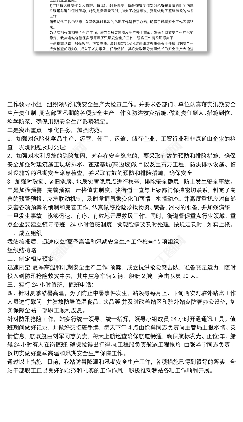 汛期安全生產(chǎn)工作總結 汛期安全生產(chǎn)大檢查工作總結