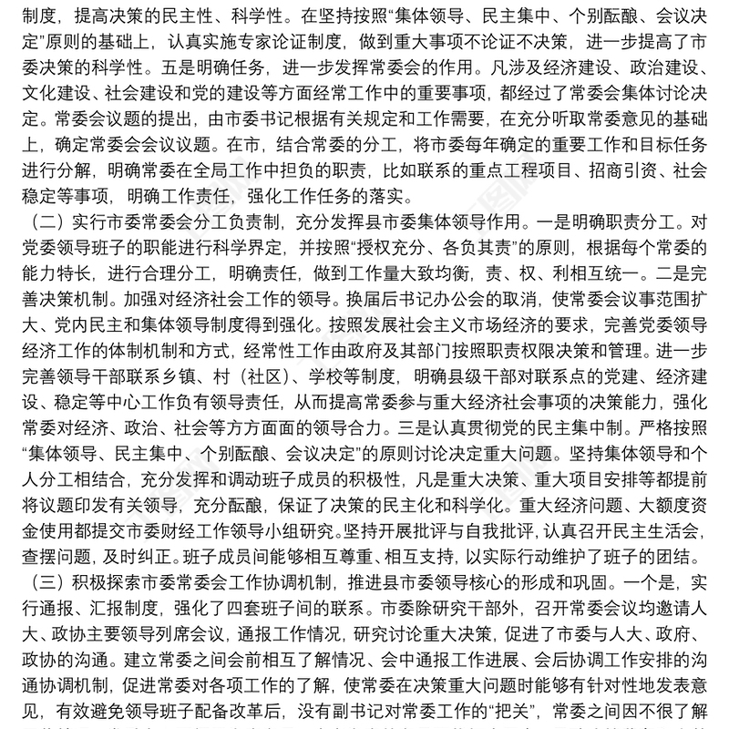 市委領(lǐng)導(dǎo)班子運行情況匯報