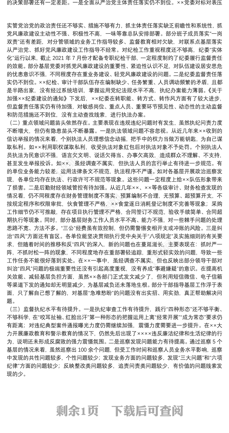 2021黨支部上半年紀(jì)檢監(jiān)察工作總結(jié)2022紀(jì)檢監(jiān)察應(yīng)知100題2022派駐紀(jì)檢監(jiān)察組工作規(guī)則紀(jì)檢監(jiān)察支部2021年工作總結(jié)2022關(guān)于開(kāi)展貫徹落實(shí)紀(jì)檢監(jiān)察機(jī)關(guān)處理檢舉控告工作規(guī)則情況自查自糾工作的報(bào)告2022監(jiān)獄紀(jì)檢監(jiān)察工作情況匯報(bào)2022政治巡察述職述責(zé)述廉報(bào)告2022紀(jì)檢監(jiān)察工作存在問(wèn)題的原因分析2021紀(jì)檢監(jiān)察組監(jiān)督單位黨建工作總結(jié)2021政治巡察民主生活會(huì)個(gè)人對(duì)照檢查材料2023紀(jì)檢監(jiān)察新時(shí)代中國(guó)特色社會(huì)主義思想工作方案2023紀(jì)檢監(jiān)察工作總結(jié)新時(shí)代中國(guó)特色社會(huì)主義思想2023紀(jì)檢監(jiān)察干部教育整頓工作方案2023紀(jì)檢監(jiān)察干部教育整頓工作匯報(bào)2023紀(jì)檢監(jiān)察干部教育整頓工作小結(jié)2023全面從嚴(yán)治黨政治巡察報(bào)告