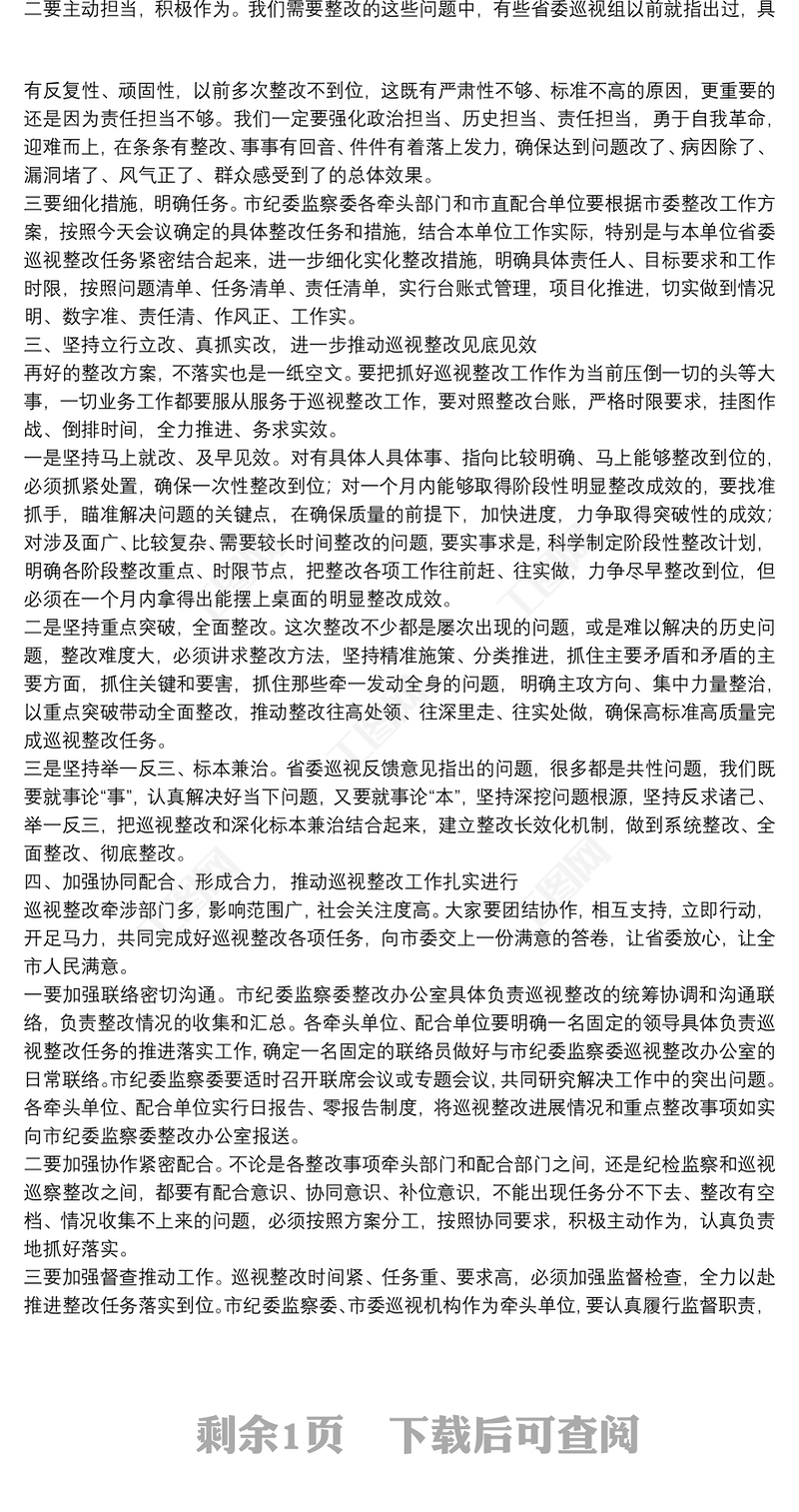 在全市推進(jìn)省委巡視整改工作動(dòng)員會(huì)議上的講話