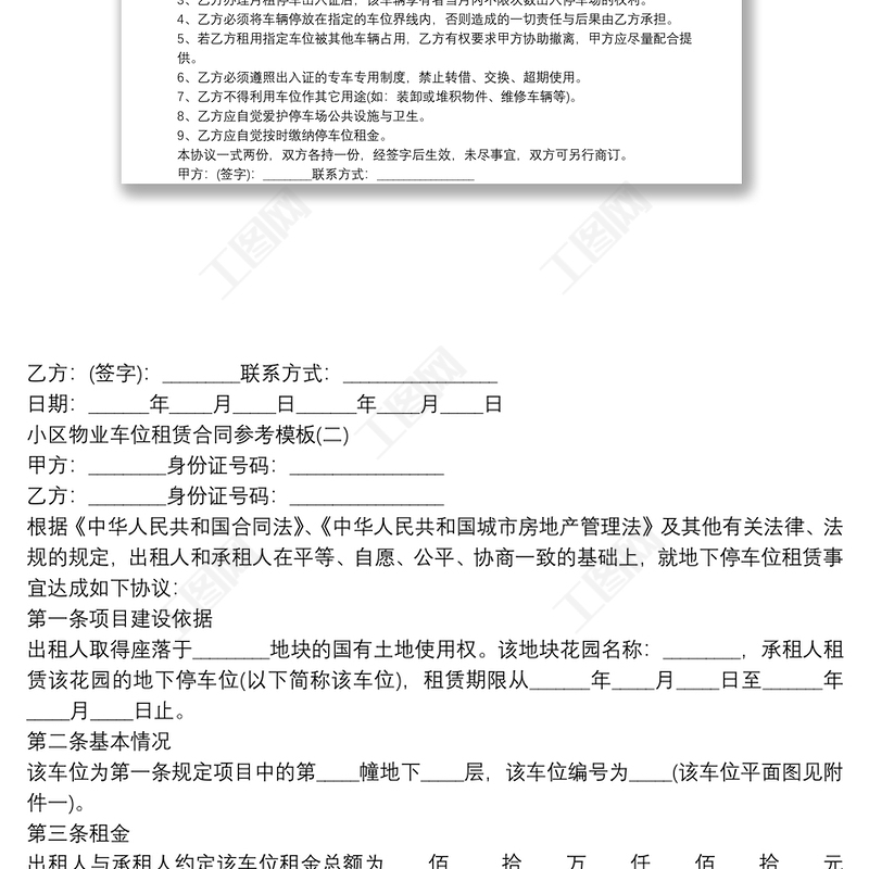 工圖網(wǎng)提供小區(qū)物業(yè)車(chē)位租賃合同參考模板【5篇】供會(huì)員免費(fèi)下載。更多精彩黨課PPT素材,盡在工圖網(wǎng)。