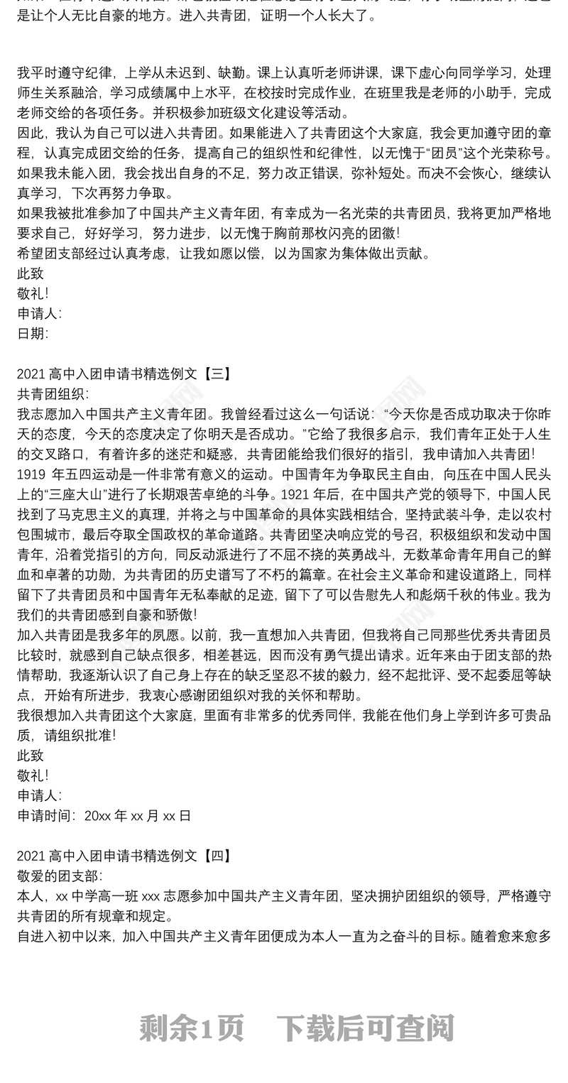 2021高中入團(tuán)申請(qǐng)書精選例文 Array