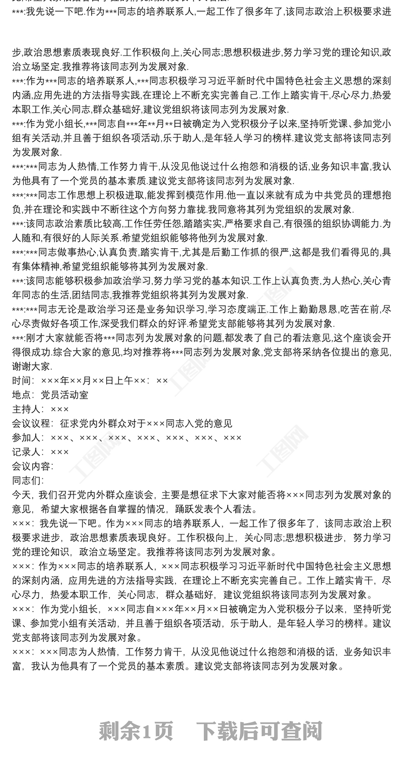 工圖網(wǎng)提供黨內(nèi)外群眾座談會(huì)議記錄 3篇供會(huì)員免費(fèi)下載。更多精彩黨課PPT素材,盡在工圖網(wǎng)。