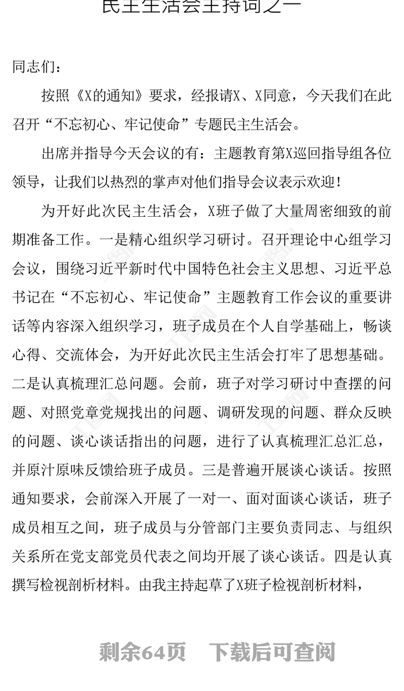工圖網(wǎng)提供主題教育民主生活會主持詞點(diǎn)評講話材料匯編民主生活會發(fā)言材料供會員免費(fèi)下載。更多精彩黨課PPT素材,盡在工圖網(wǎng)。