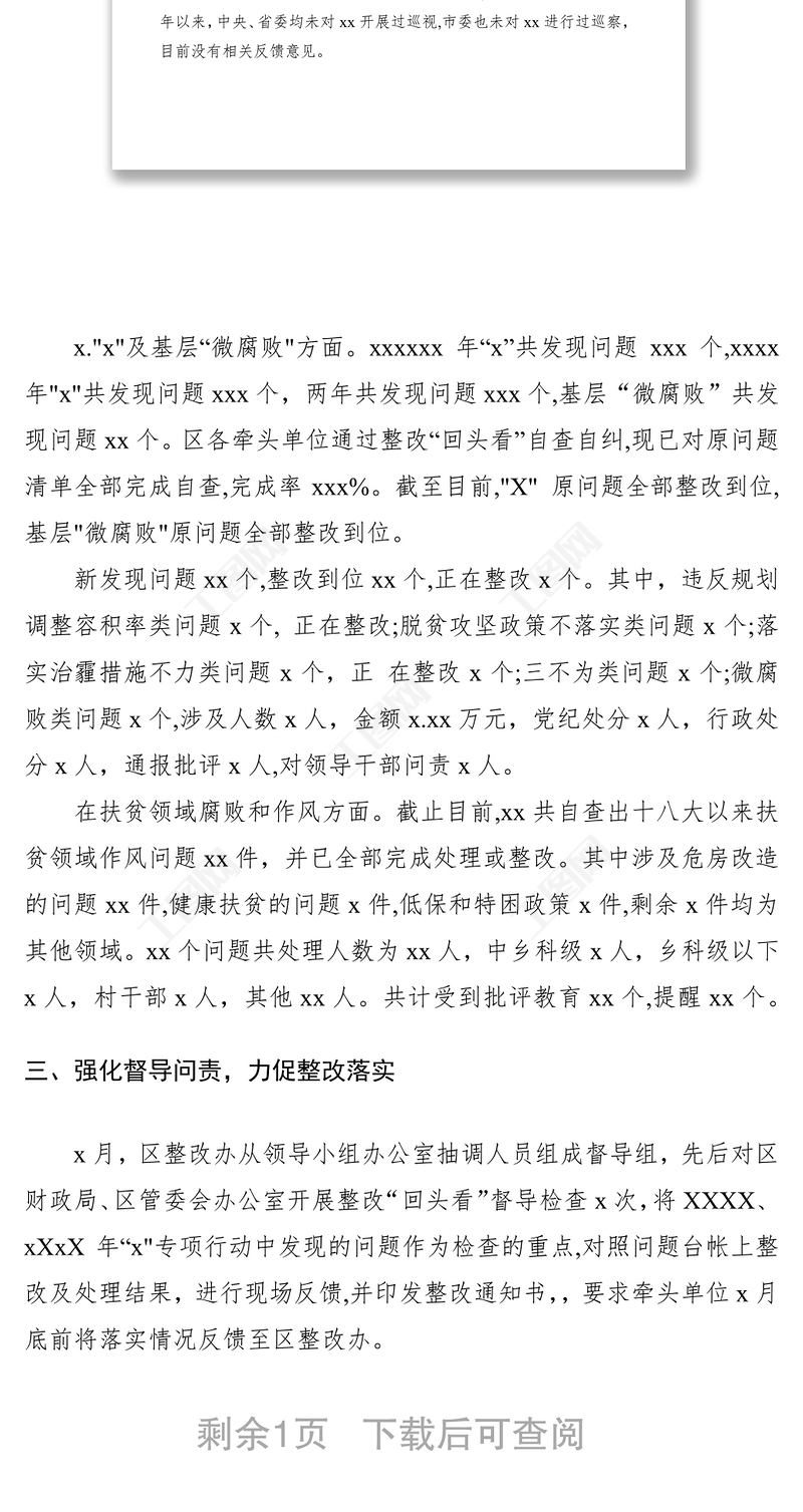 2022完成黨史學(xué)習(xí)教育專項整治巡視巡察以及上年度組織生活會等問題整改2022對照完成黨史學(xué)習(xí)教育專項整治巡視巡察以及上年度組織生活會等問題整改情況方面存2021年黨史學(xué)習(xí)教育暨巡察整改專題組織生活會班子對照檢查材料2021巡視巡察干部黨史學(xué)習(xí)心得體會2022對照黨史學(xué)習(xí)教育專項整治巡視巡察以發(fā)上年度組織生活會等問題整改情況方面存2022對照完成當(dāng)時教育專項整治巡視巡察以及上年度組織生活會等問題整改情況的問題2022縣教育局局長巡察整改專題民主生活會檢視剖析材料2021年巡察整改專題組織生活會個人對照檢查材料2022開場國鐵集團黨組巡視反饋問題整改回頭看情況的匯報2022對照完成黨史教育專項整治巡視巡察以及上年度組織生活會等問題整改情況2023集團公司新時代中國特色社會主義思想工作匯報材料2023從嚴治黨督查工作匯報材料2023全民從嚴治黨工作匯報材料2023鄉(xiāng)鎮(zhèn)從嚴治黨整改建議