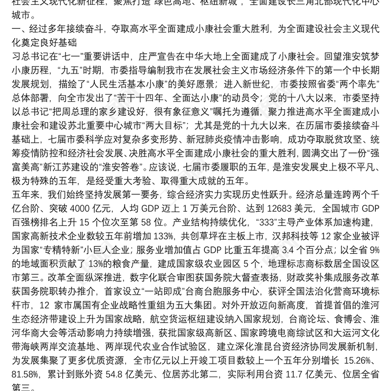 陳之常在中國共產(chǎn)黨淮安市第八次代表大會上的報告–牢記囑托擔使命創(chuàng)新實干開新局為建設長三角北部現(xiàn)代化中心城市而努力奮斗