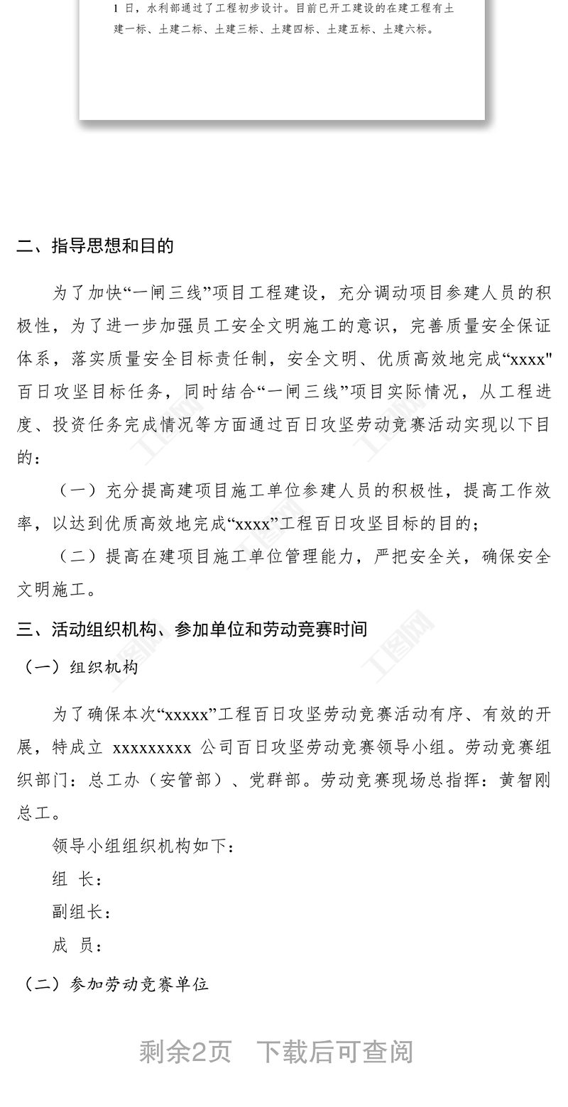 工圖網(wǎng)提供2021【工作方案】工程百日攻堅勞動競賽活動實施方案供會員免費下載。更多精彩黨課PPT素材,盡在工圖網(wǎng)。
