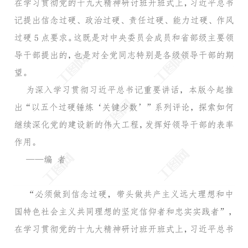 工圖網(wǎng)提供人民日報以五個過硬錘煉“關鍵少數(shù)”評論合集供會員免費下載。更多精彩黨課PPT素材,盡在工圖網(wǎng)。