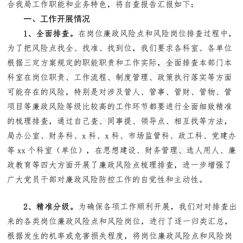 局廉政風(fēng)險(xiǎn)點(diǎn)防控自查報(bào)告工作匯報(bào)總結(jié)
