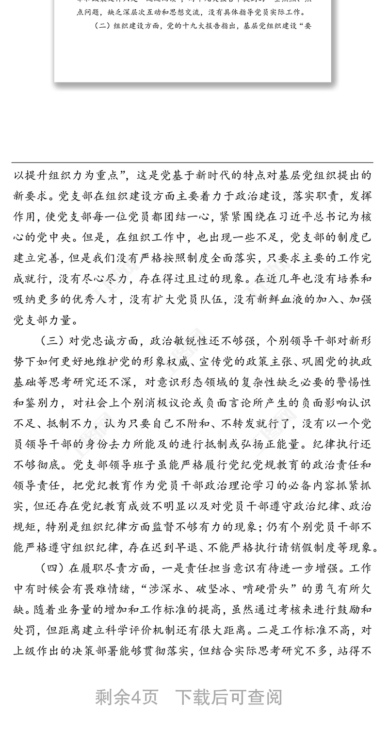 2022年組織生活會(huì)村干部個(gè)人對(duì)照檢查材料最新2021最新民主生活會(huì)對(duì)照檢查材料村黨支部書記2022年度組織生活會(huì)個(gè)人對(duì)照檢查材料黨支部班子組織生活會(huì)對(duì)照檢查材料20222022支部組織生活會(huì)組織生活會(huì)檢視問題和整改落實(shí)清單2021學(xué)生團(tuán)員組織生活會(huì)對(duì)照檢查材料2022年支委會(huì)組織生活會(huì)對(duì)照檢查材料2021組織生活會(huì)支部副書記對(duì)照檢查材料2021生態(tài)文明民主生活會(huì)對(duì)照檢查材料2021組織生活會(huì)學(xué)校黨支部對(duì)照檢查材料2021組織生活會(huì)上半年班子對(duì)照檢查材料2022年組織生活會(huì)社區(qū)黨支部對(duì)照檢查材料2021民主生活會(huì)對(duì)照檢查材料要求2021醫(yī)生民主生活會(huì)對(duì)照檢查材料2021衛(wèi)健委民主生活會(huì)對(duì)照檢查材料2021黨史專題民主生活會(huì)對(duì)照檢查材料