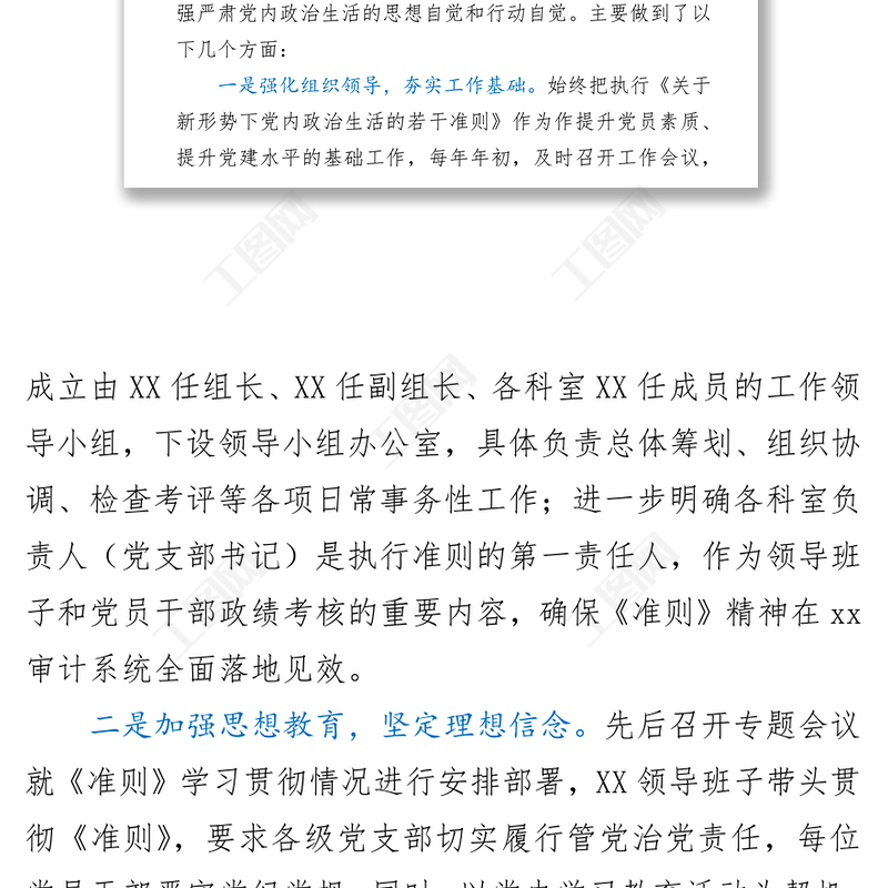 工圖網(wǎng)提供貫徹落實(shí)《關(guān)于新形勢(shì)下黨內(nèi)政治生活的若干準(zhǔn)則》自查情況報(bào)告供會(huì)員免費(fèi)下載。更多精彩黨課PPT素材,盡在工圖網(wǎng)。
