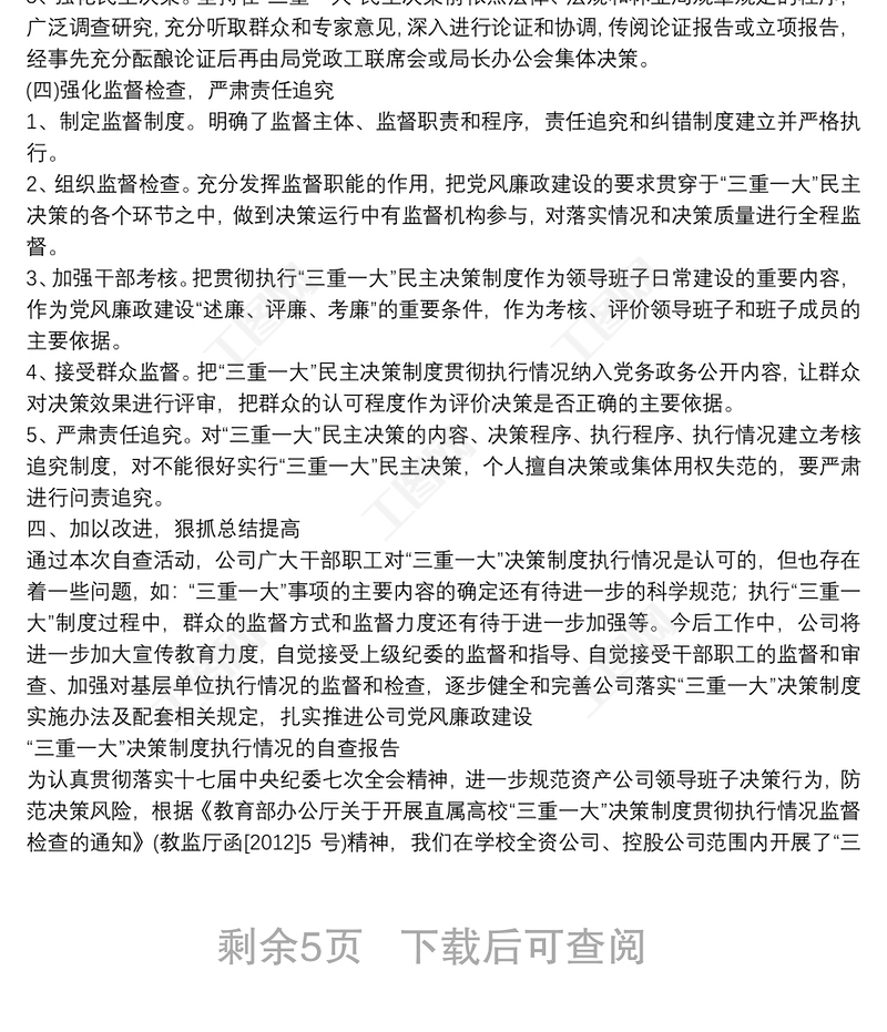“三重一大”決策制度執(zhí)行情況的自查報告