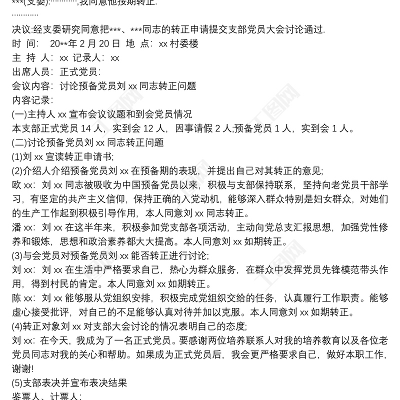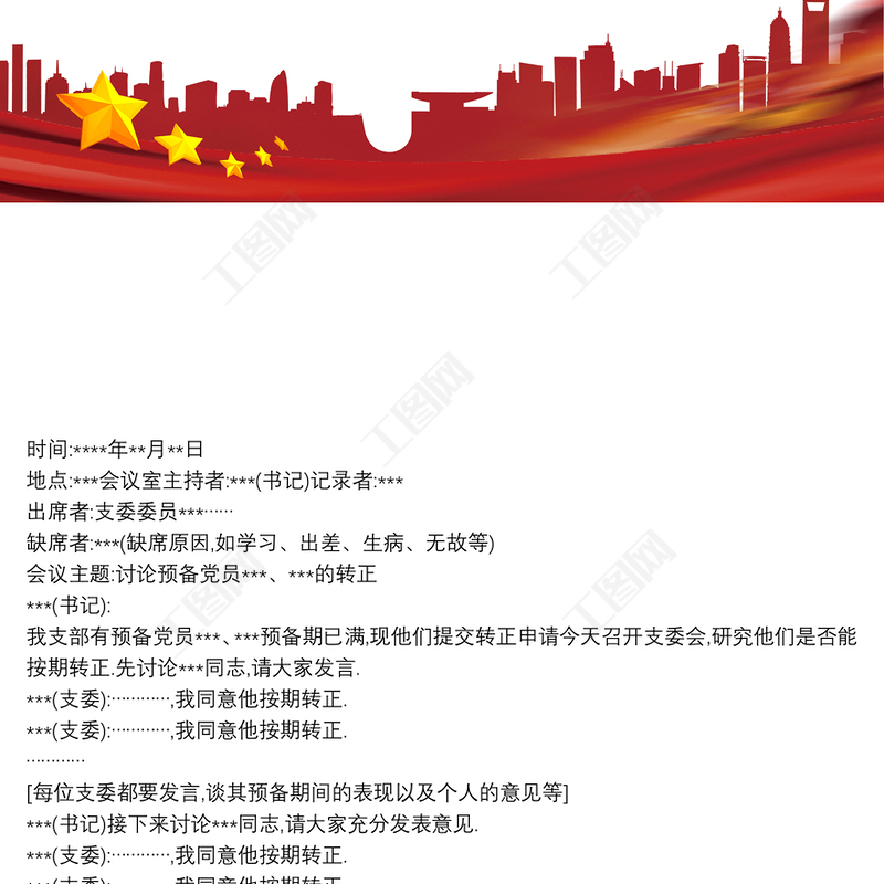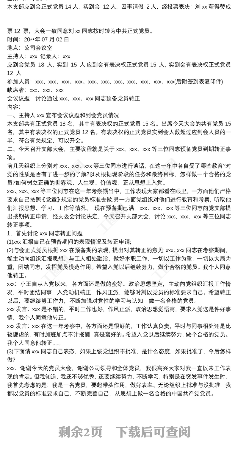 工圖網(wǎng)提供預(yù)備黨員轉(zhuǎn)正支委會(huì)、黨員大會(huì)會(huì)議記錄范例叁篇供會(huì)員免費(fèi)下載。更多精彩黨課PPT素材,盡在工圖網(wǎng)。