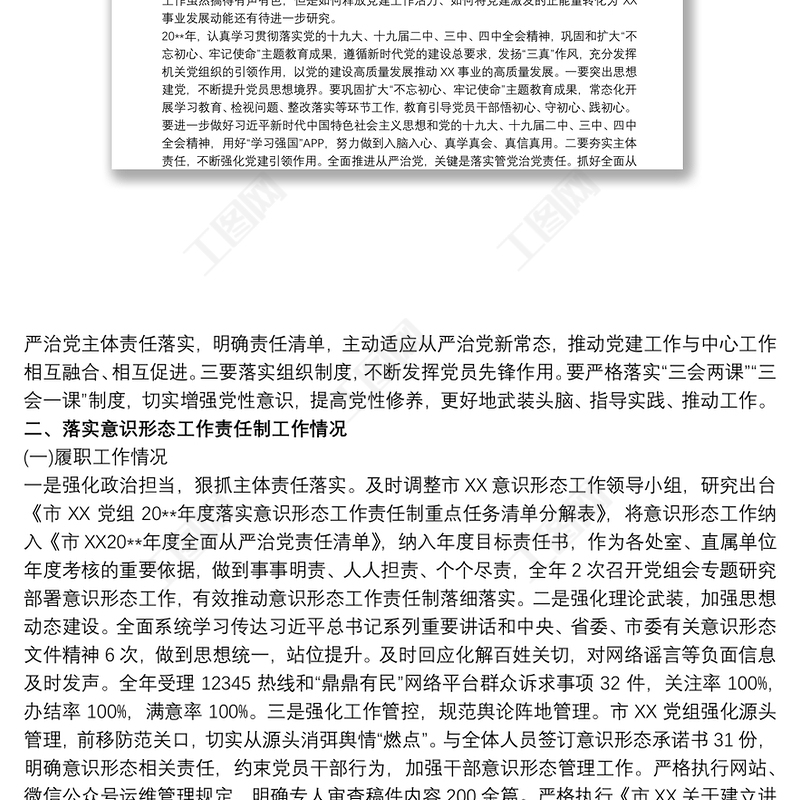 工圖網(wǎng)提供抓基層黨建、落實意識形態(tài)工作和黨風廉政建設責任制述職報告供會員免費下載。更多精彩黨課PPT素材,盡在工圖網(wǎng)。