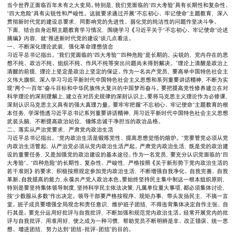 第二批“不忘初心、牢記使命”主題教育研討交流發(fā)言稿:旗幟鮮明講政治扎實推進(jìn)新時代黨的建設(shè)