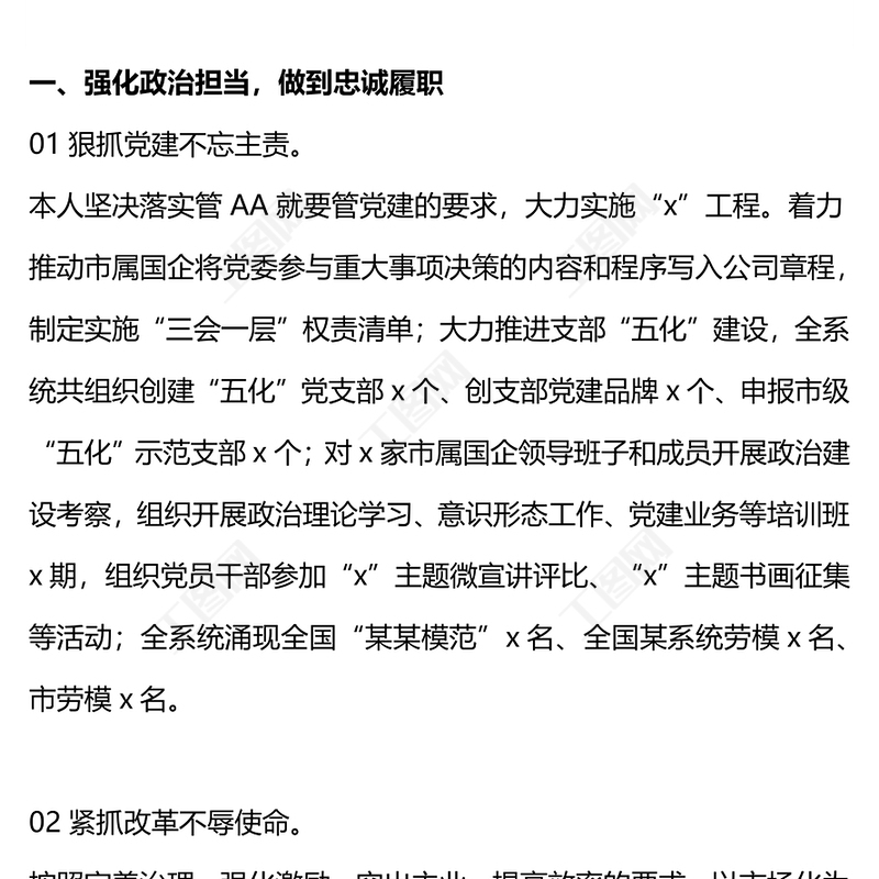 黨課講稿 > 2023年度“一把手”述職述德述廉報告PPT精美實用黨建總結(jié)述職報告模板(講稿).DOCX