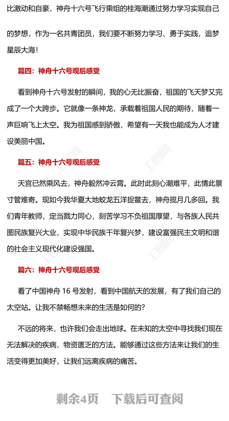 工圖網(wǎng)提供神舟十六號(hào)觀后感受15篇供會(huì)員免費(fèi)下載。更多精彩黨課PPT素材,盡在工圖網(wǎng)。
