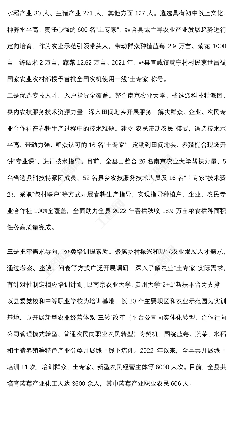 農(nóng)業(yè)“土專家”培育工作情況匯報