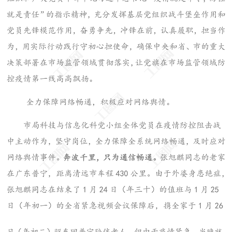 工圖網(wǎng)提供基層黨組織黨員干部在疫情防控工作中的先進(jìn)事跡先進(jìn)事跡材料供會(huì)員免費(fèi)下載。更多精彩黨課PPT素材,盡在工圖網(wǎng)。