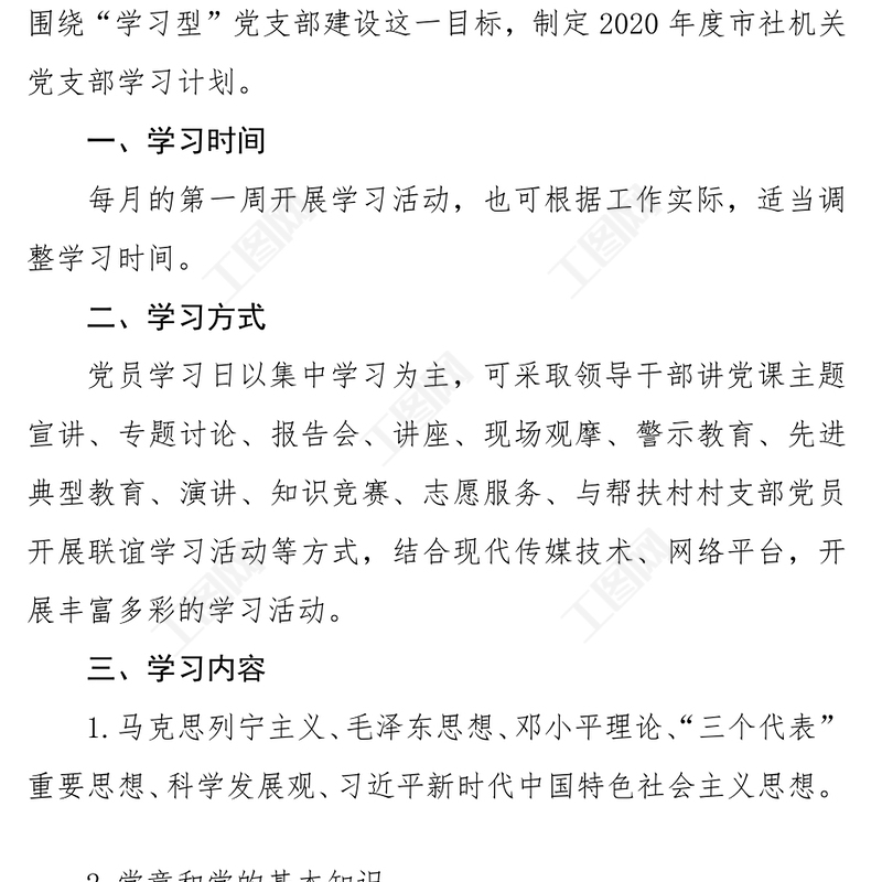 工圖網(wǎng)提供2020年機關(guān)黨支部學(xué)習(xí)計劃黨支部工作計劃供會員免費下載。更多精彩黨課PPT素材,盡在工圖網(wǎng)。
